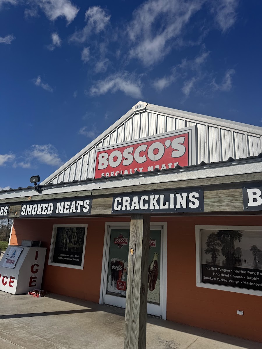 Bosco’s Specialty Meats sits just off the highway in Opelousas like a local secret tucked into the rhythm of everyday Louisiana life. The moment you pull up, there’s a warmth that feels both familiar and inviting — a place where the bustle slows to a comfortable, unhurried pace, and the rich scents of smoked sausage and freshly fried chicken cracklins greet you like an old friend.